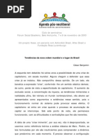 (1) Esta afirmao foi seguida de uma pequena discusso sobre a ao do MAB, explicitando a existncia do conflito entre as lideranas que participam e apiam e as que no apiam o Movimento. Ficou estabelecido que esta seria uma das questes a serem encaminhadas pelos assentados no interior do assentamento com suas prprias organizaes na direo de um entendimento para levar frente as propostas de superao e desenvolvimento do local.