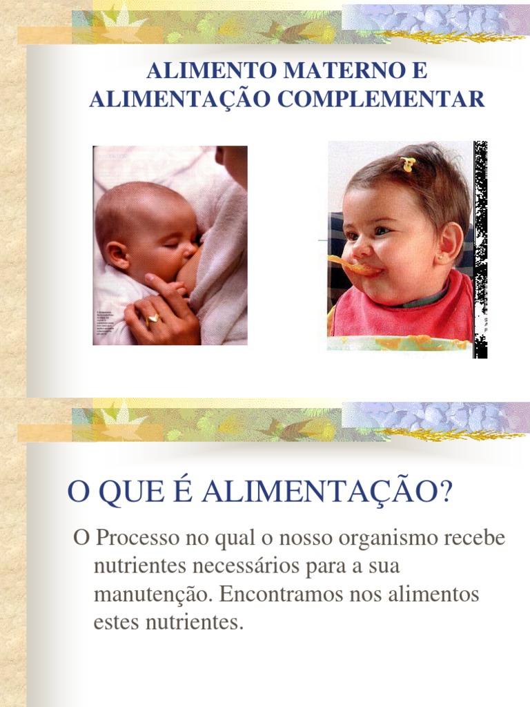 A partir dos seis meses a criana dever receber leite materno e outros alimentos que atendam as necessidades, principalmente ferro e vitamina A.