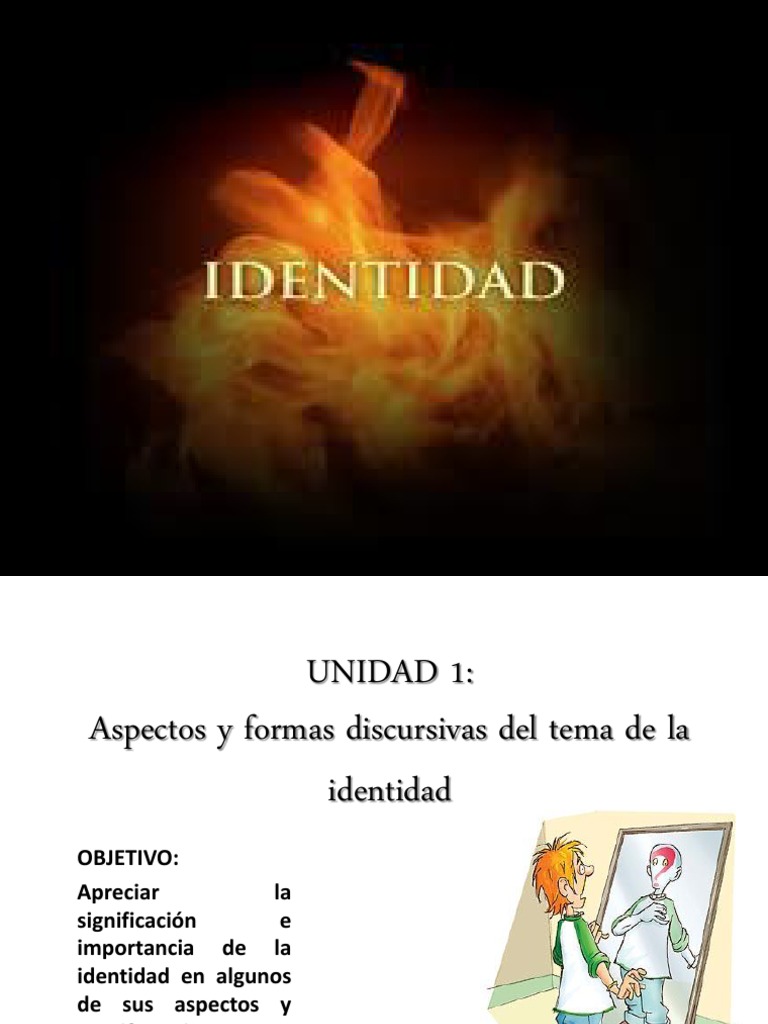 UNIDAD 1: Aspectos y formas discursivas del tema de la identidad OBJETIVO: Apreciar la significación e importancia de la identidad en algunos de sus aspectos y manifestaciones literarias. .