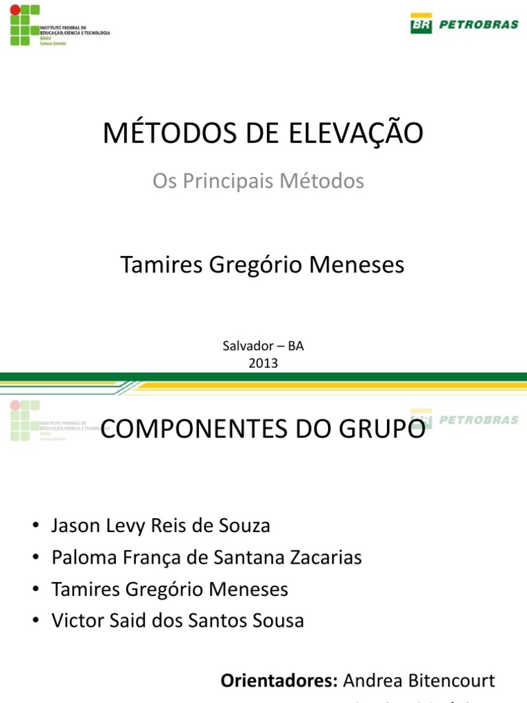 2. Mtodo de Elevao 3. Mtodo de Elevao Natural 4 . Mtodo de Elevao Artificial 5. Mtodos por Elevao Artificial mais utilizado no Brasil 6. Referncias Bibliogrficas