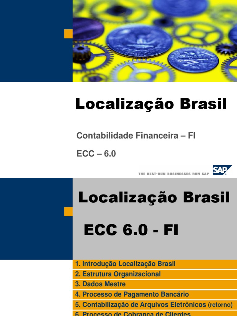1. Introduo Localizao Brasil 2. Estrutura Organizacional 3. Dados Mestre 4. Processo de Pagamento Bancrio 5. Contabilizao de Arquivos Eletrnicos (retorno) 6. Processo de Cobrana de Clientes