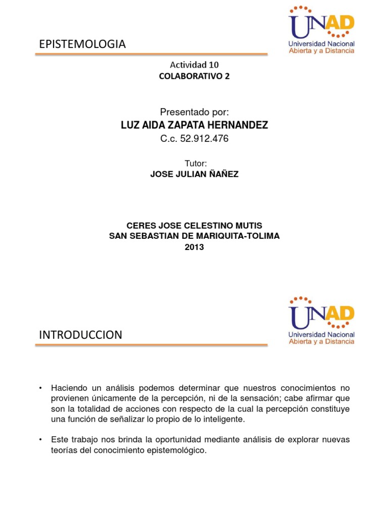 Haciendo un anlisis podemos determinar que nuestros conocimientos no provienen nicamente de la percepcin, ni de la sensacin; cabe afirmar que son la totalidad de acciones con respecto de la cual la percepcin constituye una funcin de sealizar lo propio de lo inteligente. Este trabajo nos brinda la oportunidad mediante anlisis de explorar nuevas teoras del conocimiento epistemolgico.