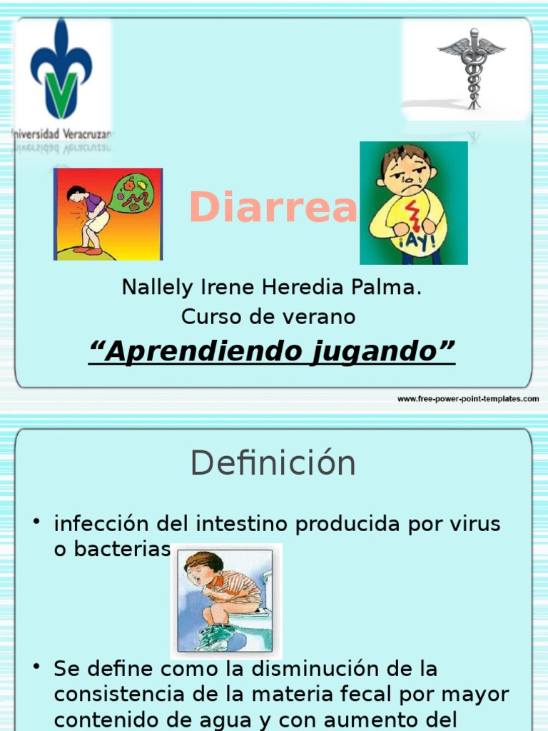 generalmente mayor de tres veces en 24 horas .Definición • infección del intestino producida por virus o bacterias • Se define como la disminución de la consistencia de la materia fecal por mayor contenido de agua y con aumento del número de deposiciones diarias.