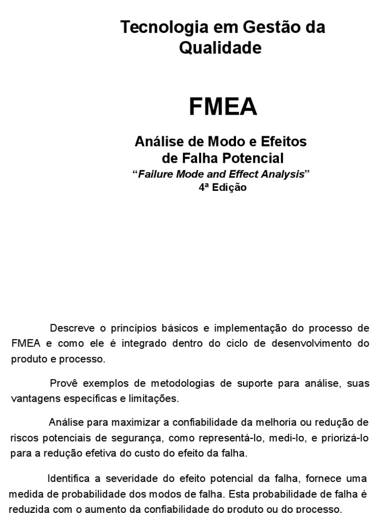 processo de FMEA eficaz e eficiente.