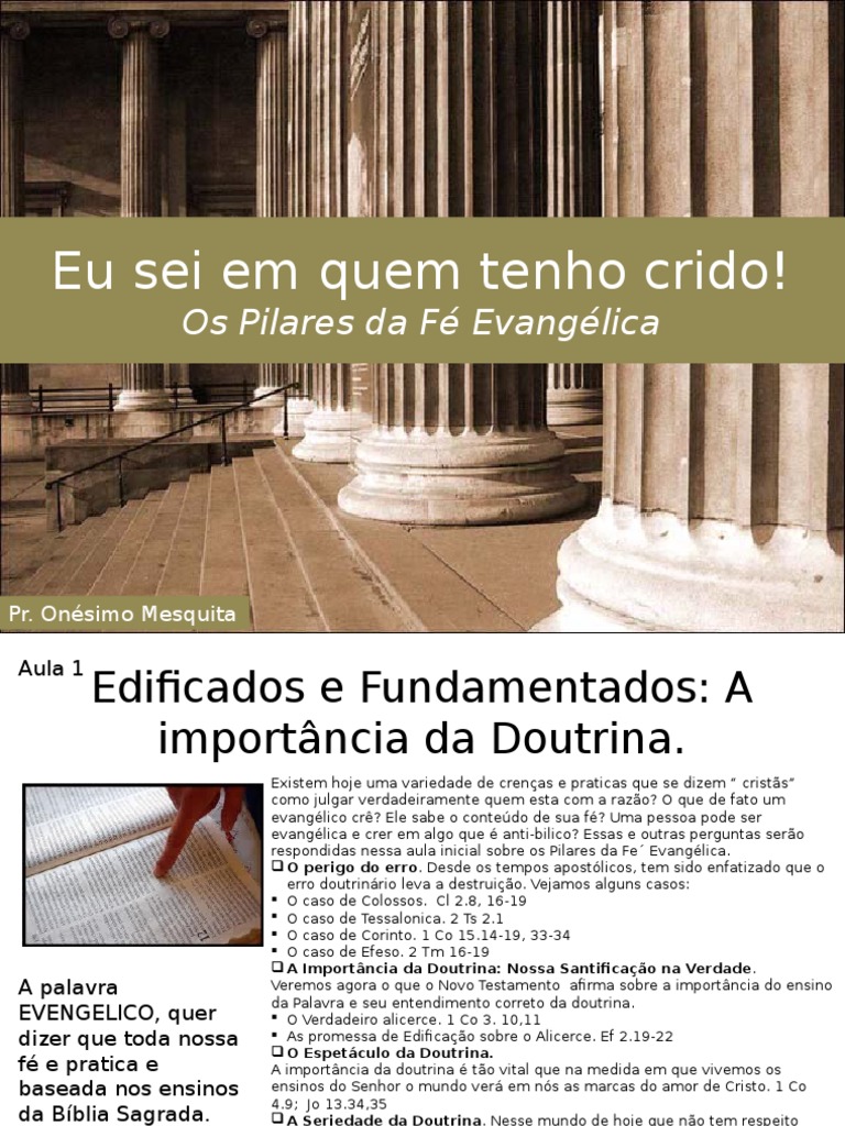 respondidas nessa aula inicial sobre os Pilares da Fe Evanglica.