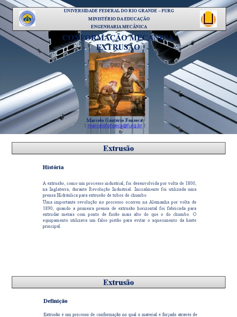 Os materiais mais usados na extruso so: alumnio, cobre, ao de baixo carbono,