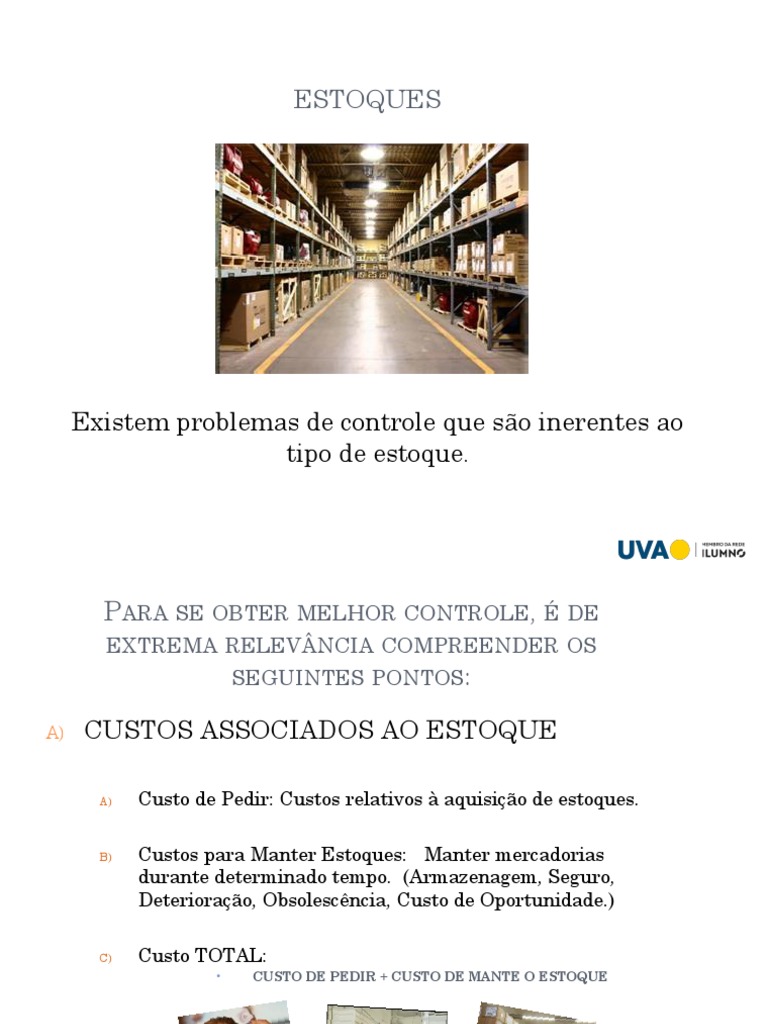 A) CUSTOS ASSOCIADOS AO ESTOQUE