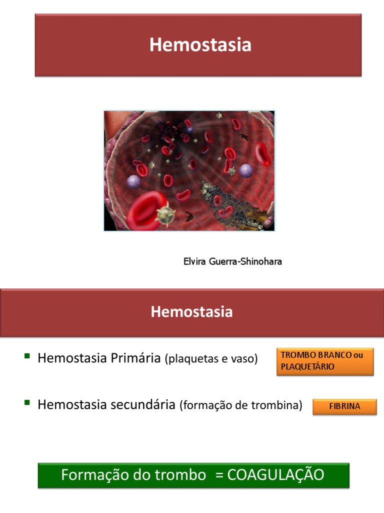 Hemostasia primria (plaquetas e vaso) TROMBO BRANCO ou