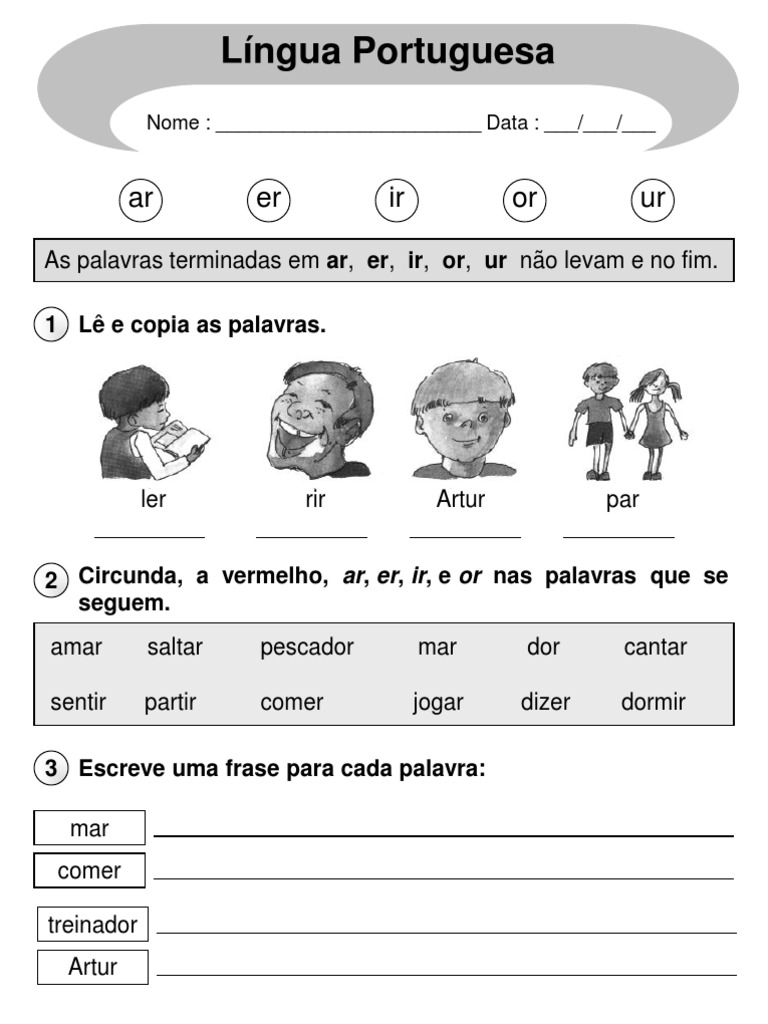 4 Circunda, a vermelho, ar, er, ir, or e ur
