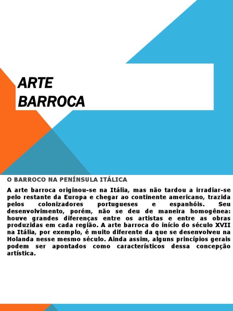 A arte barroca originou-se na Itália, mas não tardou a irradiar-se