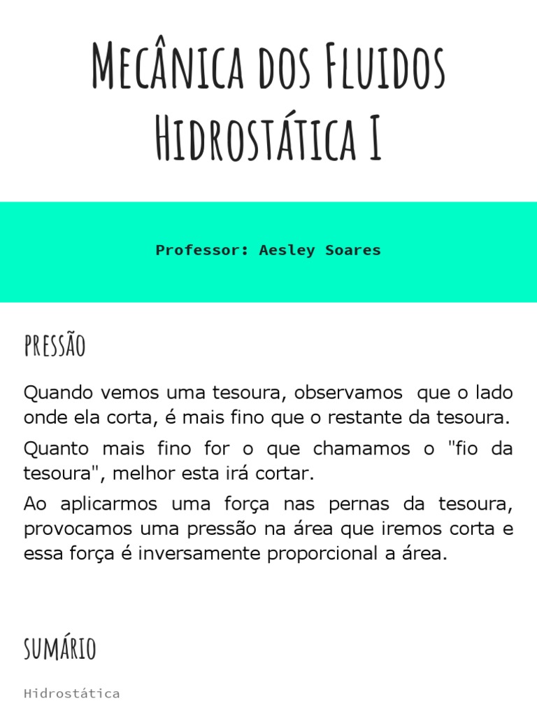 (tanto líquidos como os gasosos) em repouso, ou seja, que