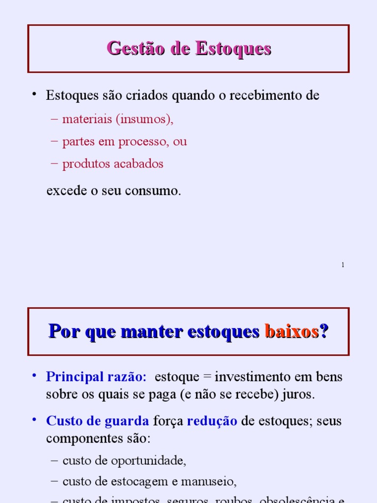 – Suponha empresa c/ custo médio de guarda de 30%,