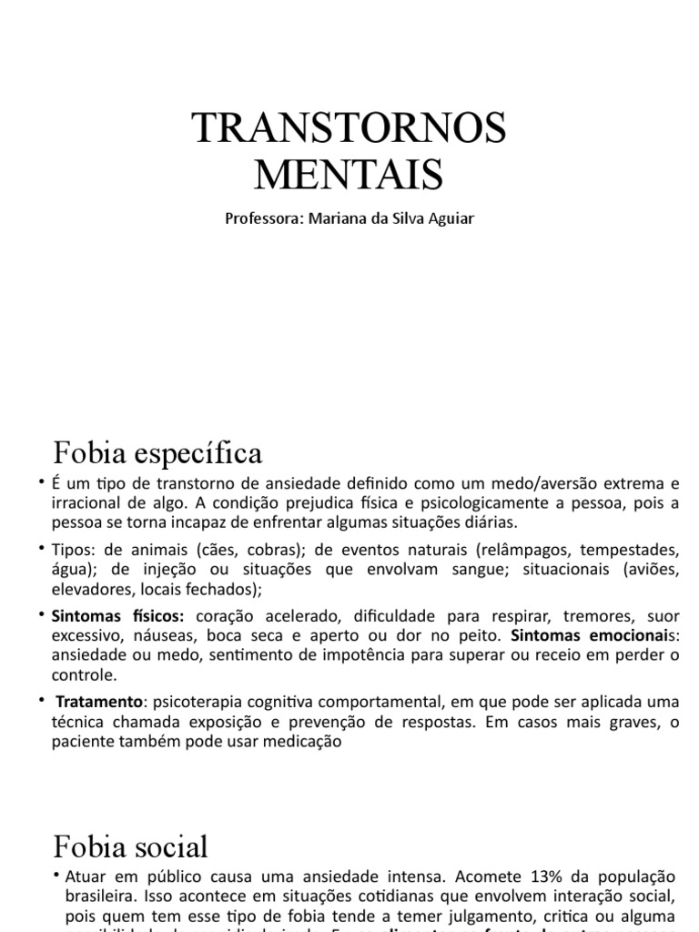 água); de injeção ou situações que envolvam sangue; situacionais (aviões,