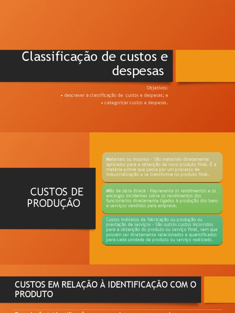 • descrever a classificação de custos e despesas; e