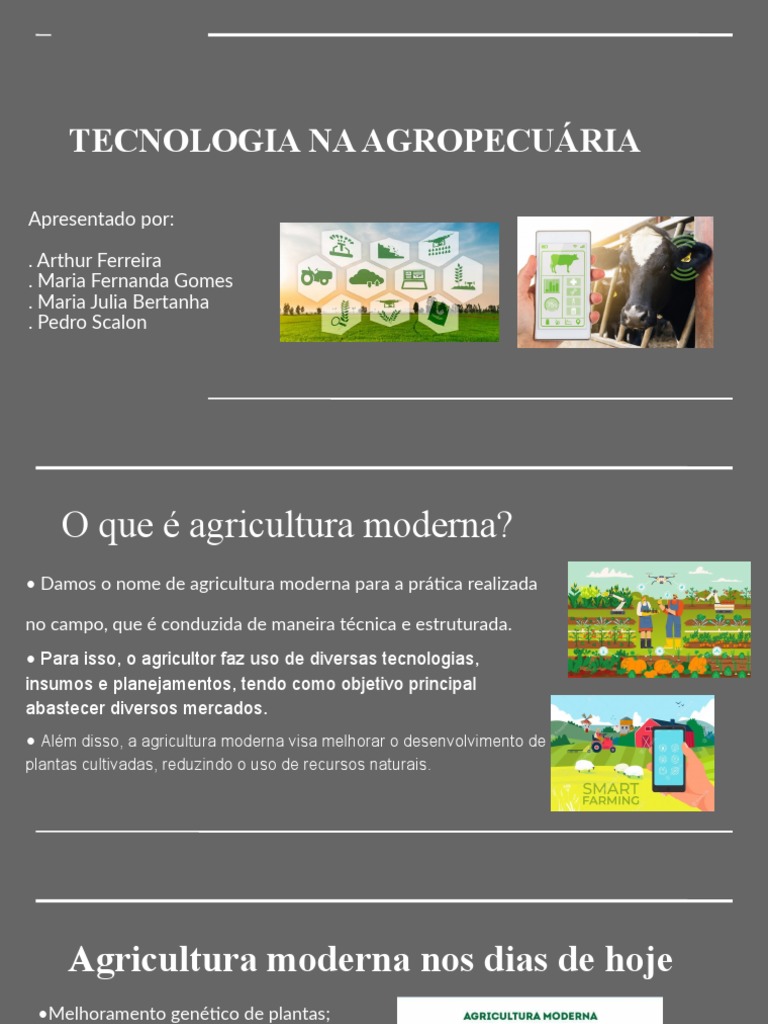 • Além disso, a agricultura moderna visa melhorar o desenvolvimento de