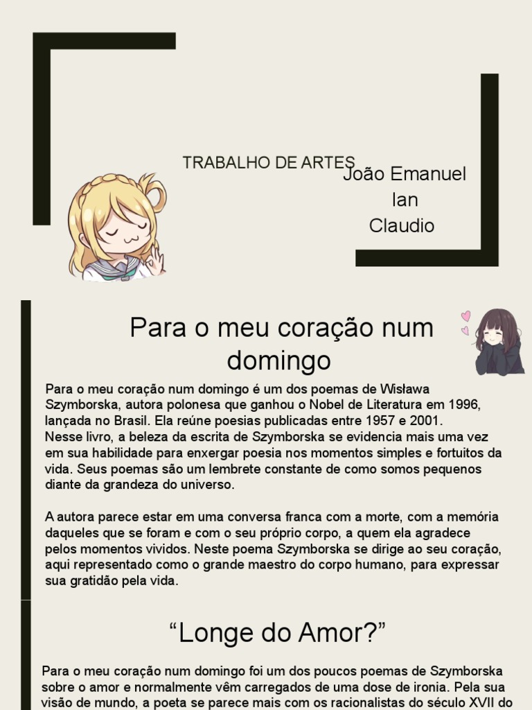 Para o meu coração num domingo foi um dos poucos poemas de Szymborska
