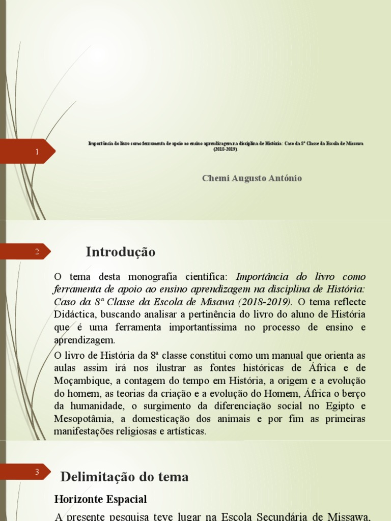 Importância do livro como ferramenta de apoio ao ensino aprendizagem na disciplina de História: Caso da 8ª Classe da Escola de Missawa