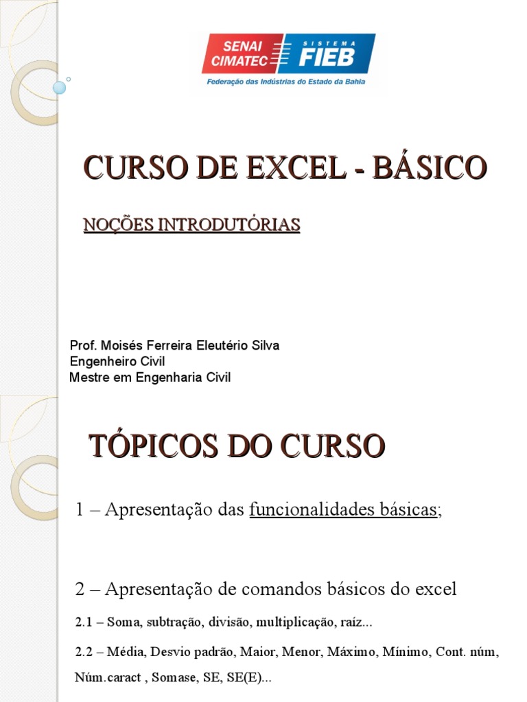 2 – Apresentação de comandos básicos do excel