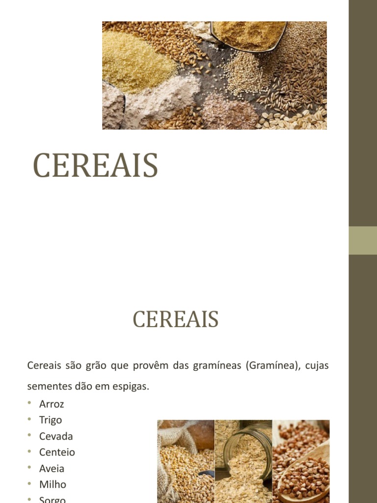 Cereais são grão que provêm das gramíneas (Gramínea), cujas