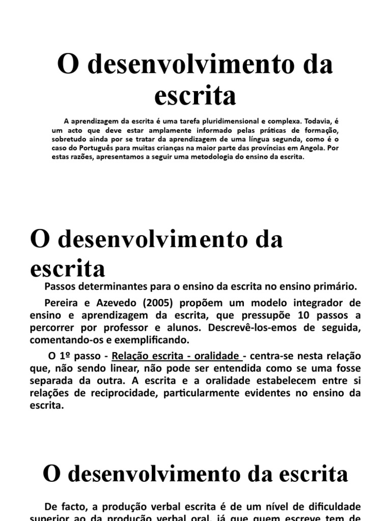 do ensino primário em Angola. Estas modalidades de escrita