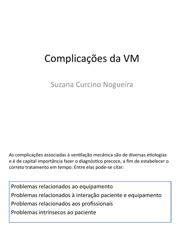 As complicações associadas à ventilação mecânica são de diversas etiologias