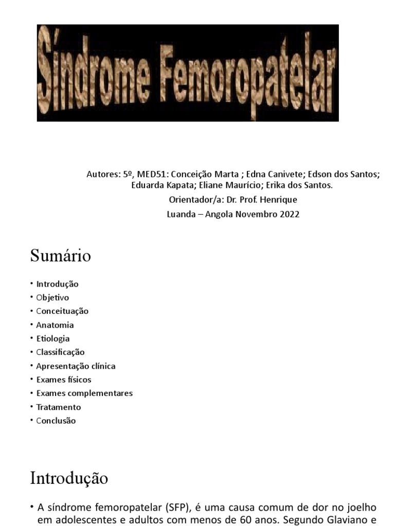 • A síndrome femoropatelar (SFP), é uma causa comum de dor no joelho