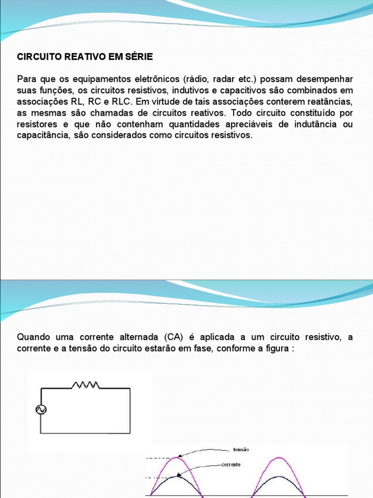 as mesmas são chamadas de circuitos reativos. Todo circuito constituído por