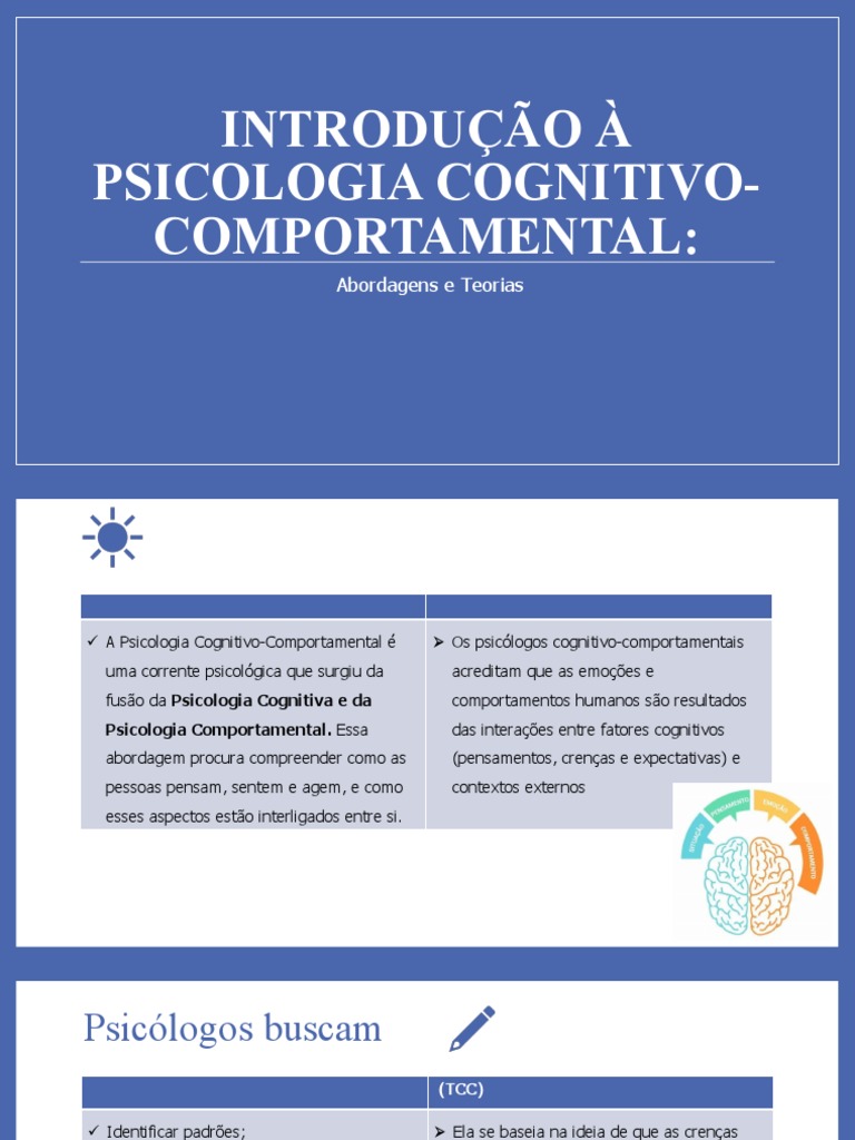 A Psicologia Cognitivo-Comportamental é Os psicólogos cognitivo-comportamentais