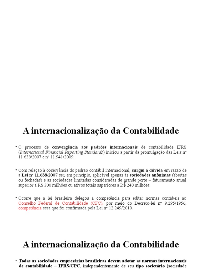 (International Financial Reporting Standards) iniciou a partir da promulgação das Leis n o