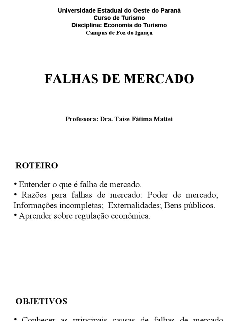 • Conhecer as principais causas de falhas de mercado
