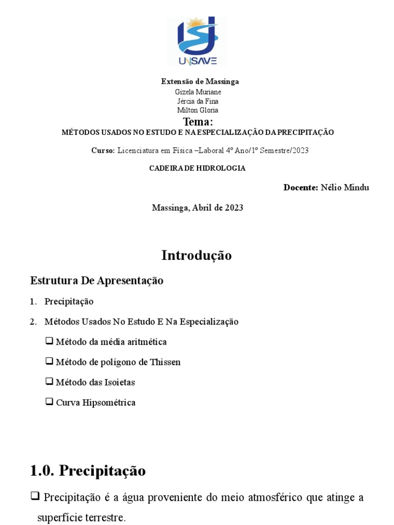 precipitação. Introdução ao Planeamento e Gestão de Recursos Hídricos, (vol. 4), Serie