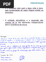 Precipitação é a água proveniente do meio atmosférico que atinge a