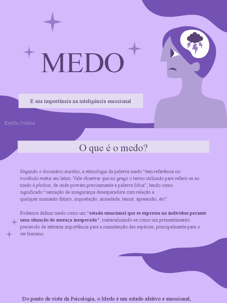 Podemos definir medo como um “estado emocional que se expressa no indivíduo perante