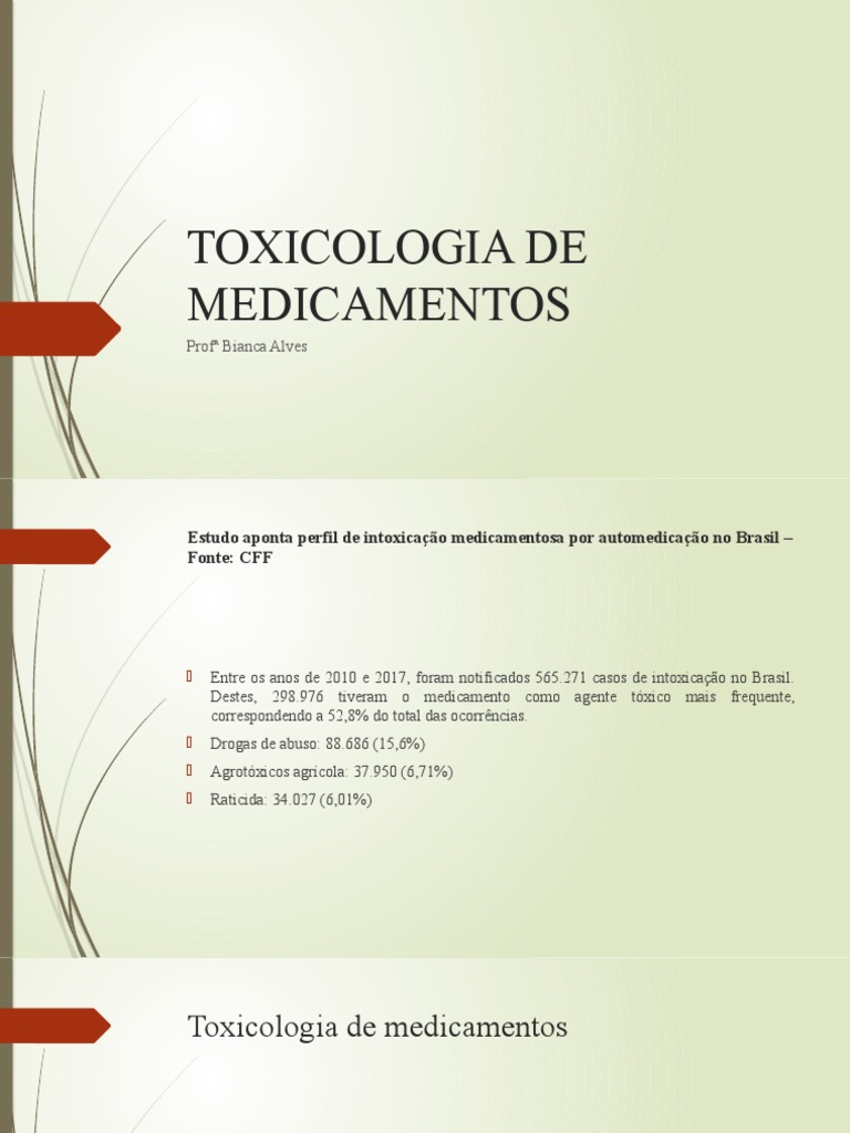 Destes, 298.976 tiveram o medicamento como agente tóxico mais frequente,