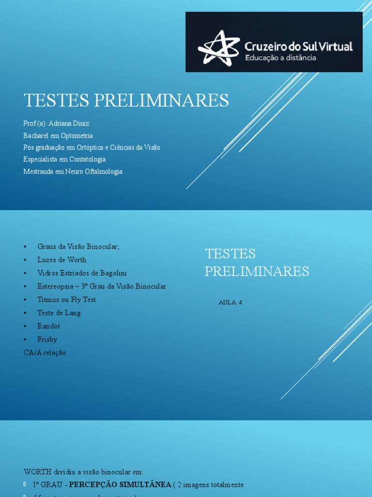 heterotropia e Correspondência Retiniana Anômala (CRA) deverá ver o