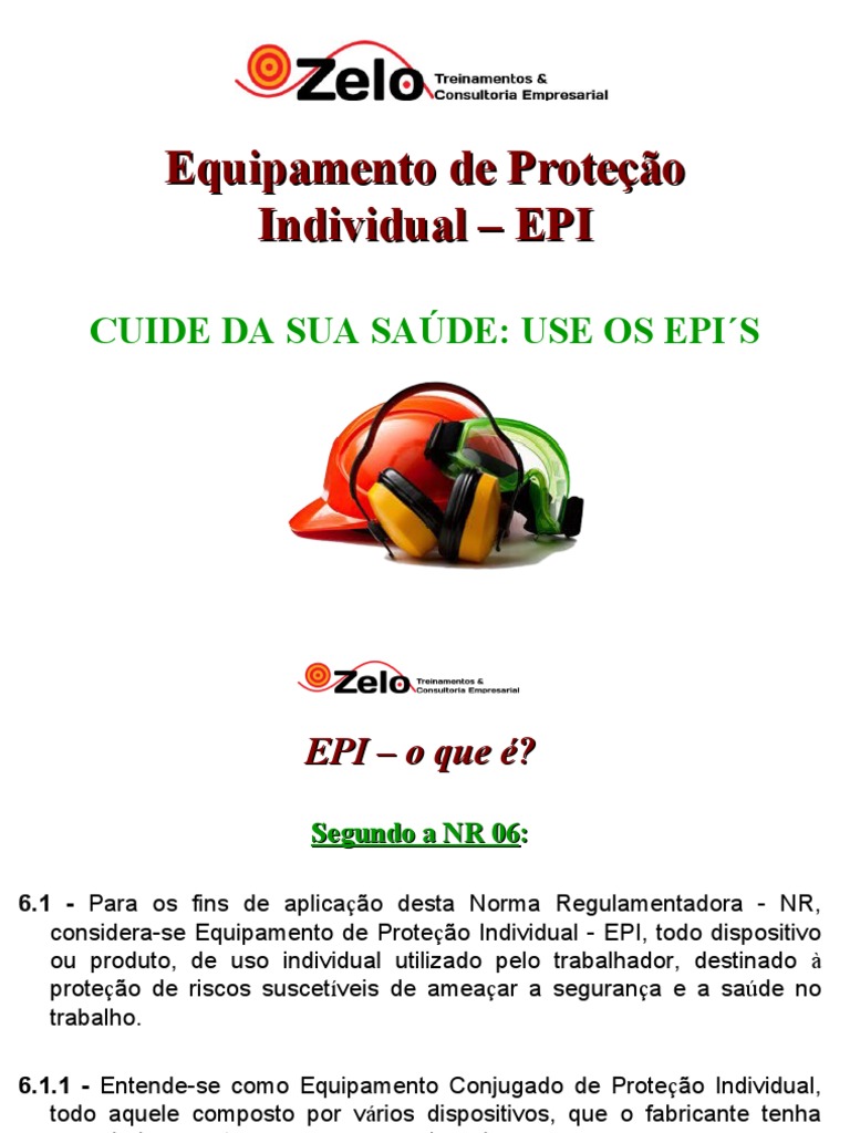 regulamentado NR06, que estabelece que os EPIs sejam fornecidos de forma
