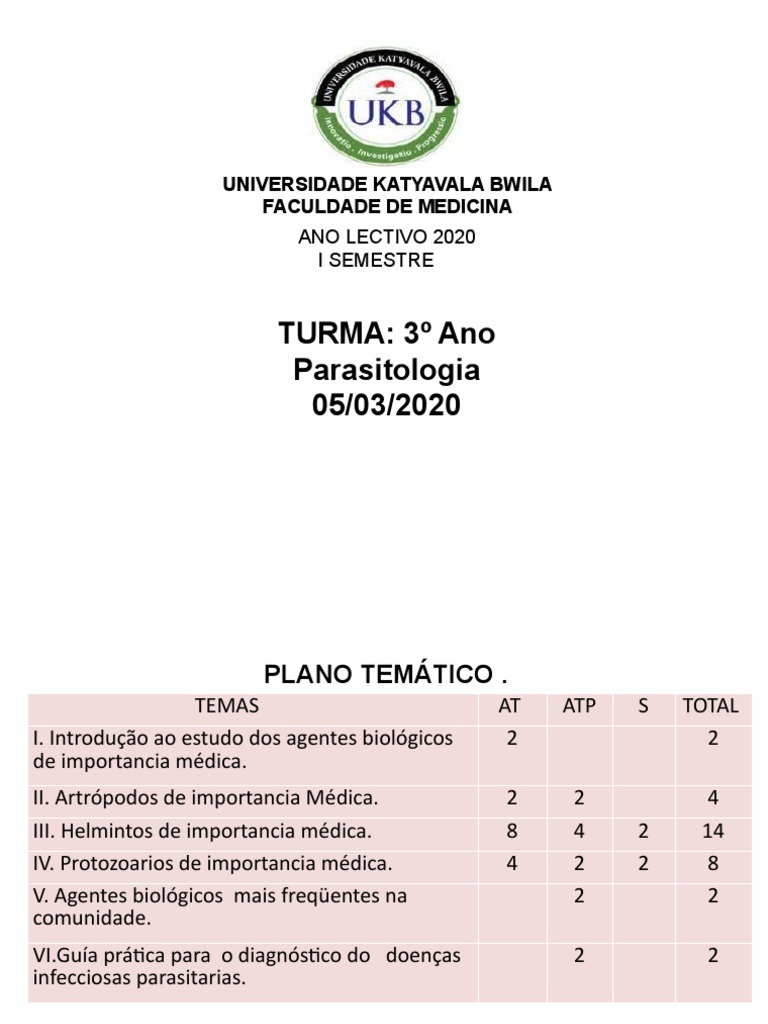 • Definir a disciplina de Parasitologia Médica e descrever a sua