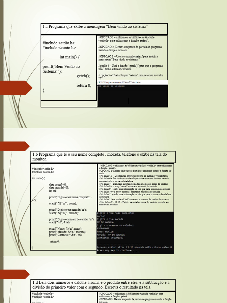 //OPCCAO I – utilizamos as bibliotecas #include <stdio.h> para utilizarmos