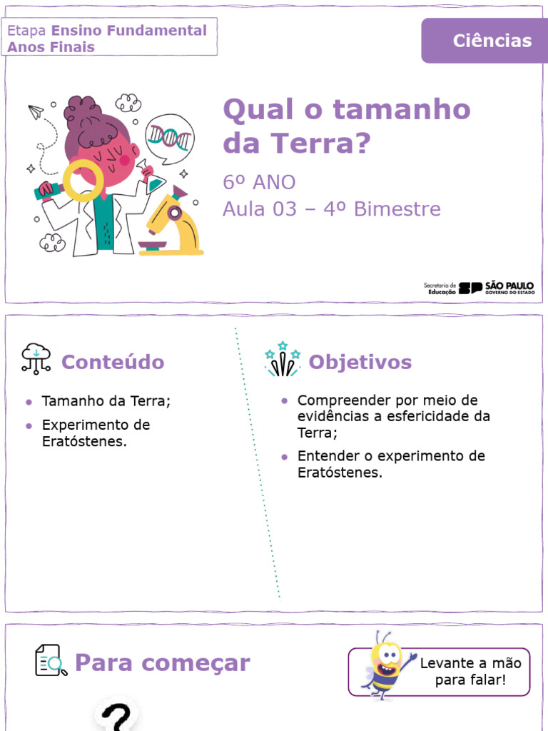● Tamanho da Terra; ● Compreender por meio de