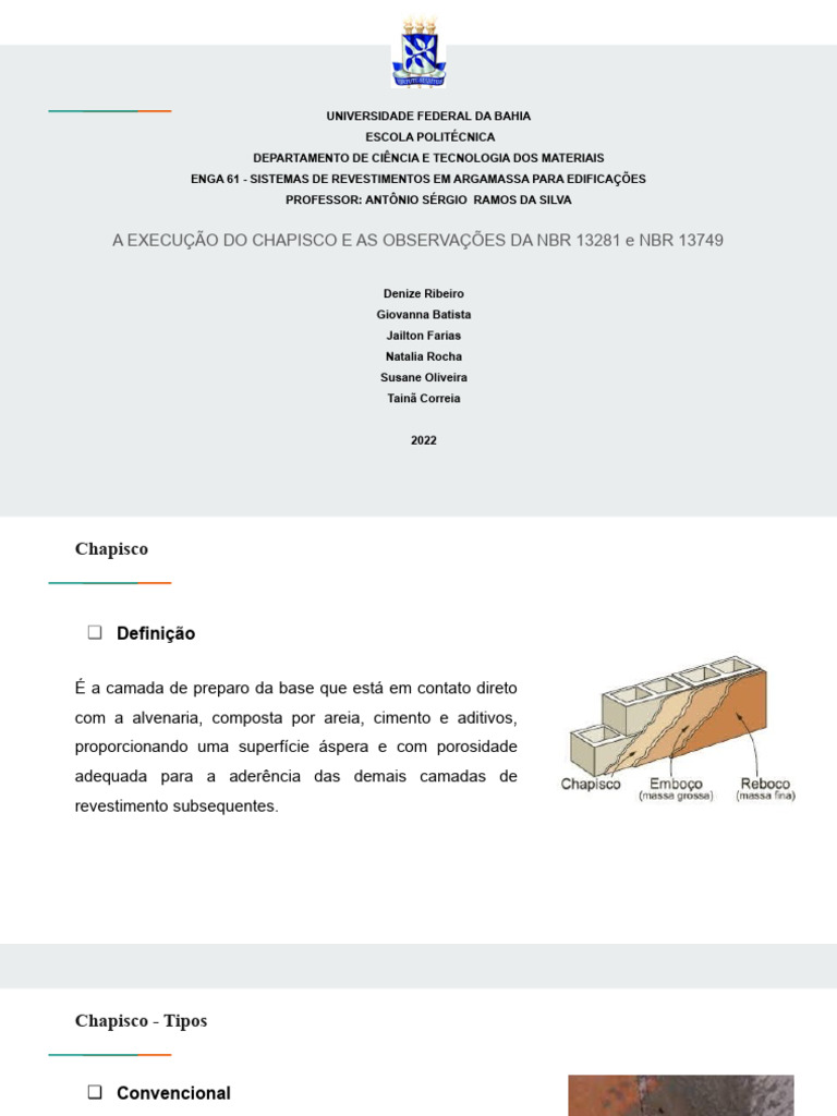 A EXECUÇÃO DO CHAPISCO E AS OBSERVAÇÕES DA NBR 13281 e NBR 13749