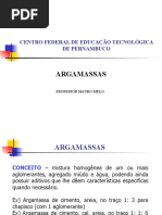 e nas especificações de projeto, materiais, das argamassas