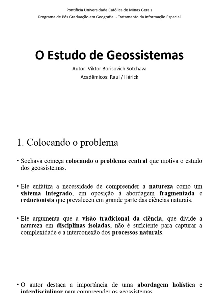 investigar e compreender os geossistemas em sua totalidade.