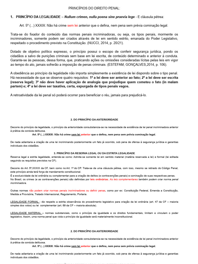 1. PRINCÍPIO DA LEGALIDADE – Nullum crimen, nulla poena sine praevia lege - E cláusula pétrea: