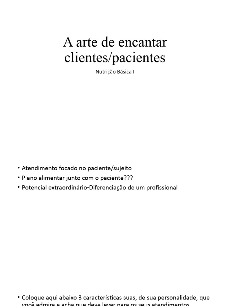 • Oportunidade de saber o que ele quer ser tratado
