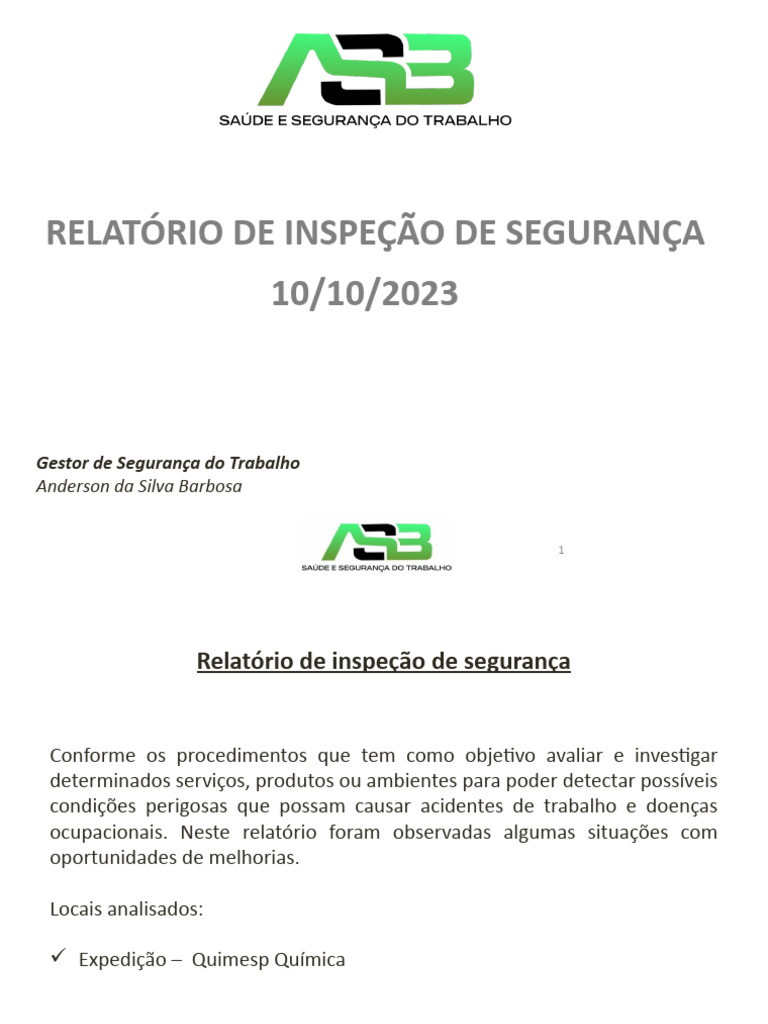RELATÓRIO DE INSPEÇÃO DE SEGURANÇA