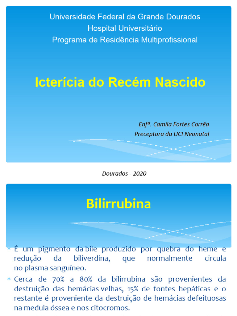 da bilirrubina e apresentam dificuldade na sucção e na