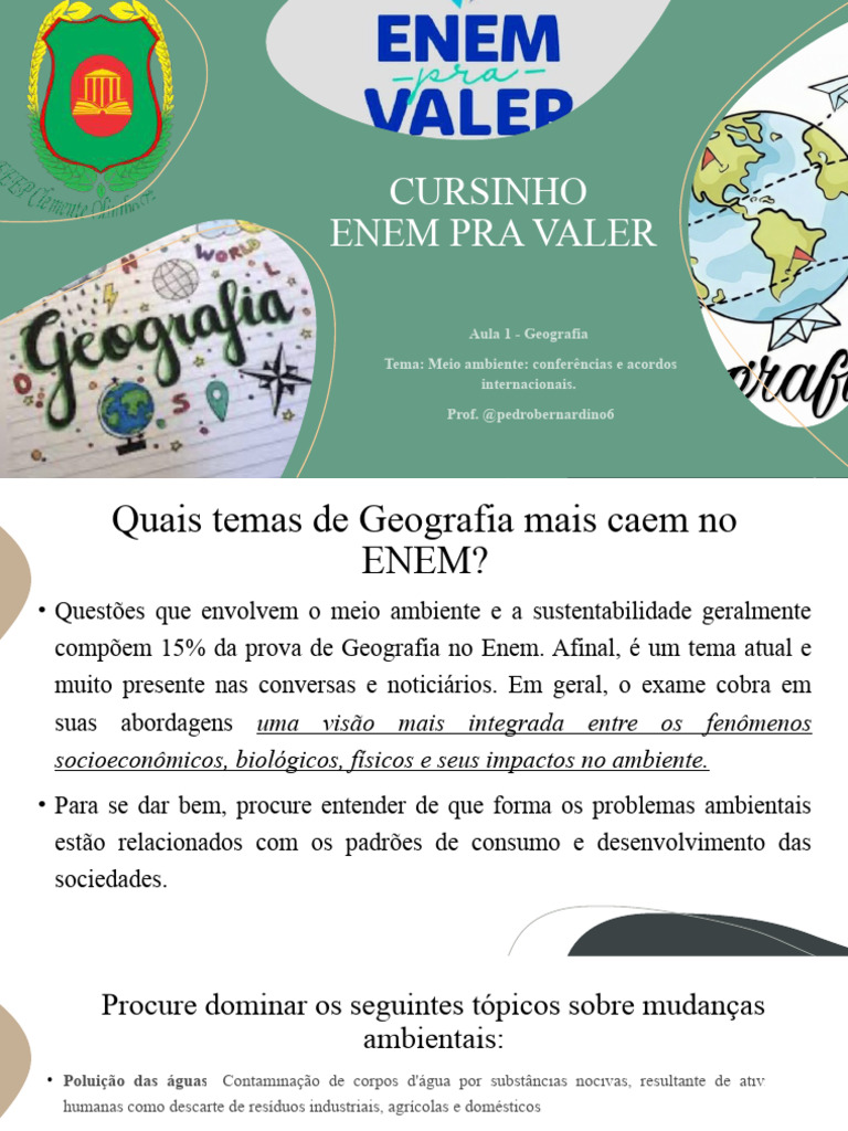 compõem 15% da prova de Geografia no Enem. Afinal, é um tema atual e