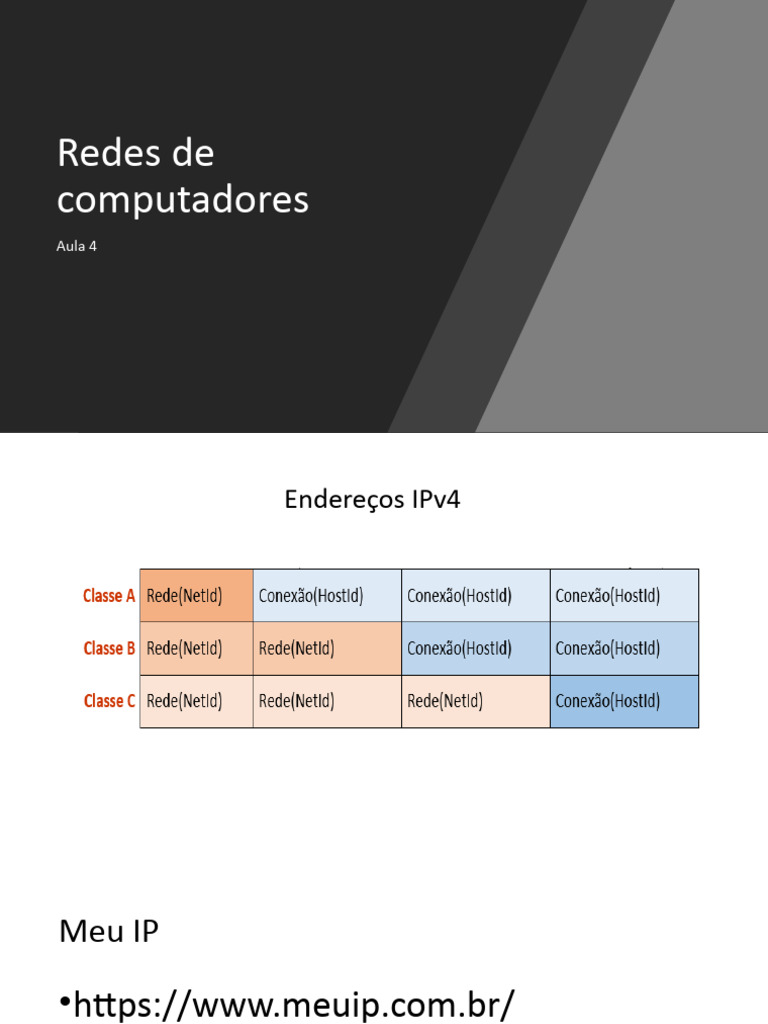 ✔ Os bits do IP da conexão associados a bits 1 da máscara indicam a parte do