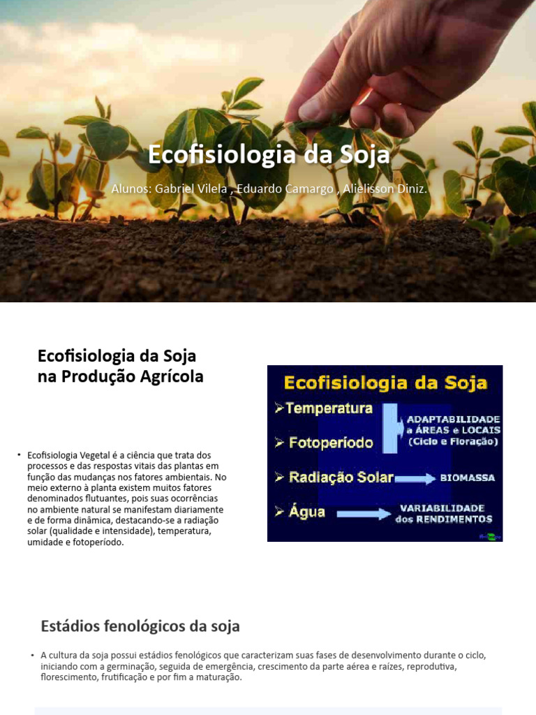 • O primeiro estágio de desenvolvimento da soja se inicia na