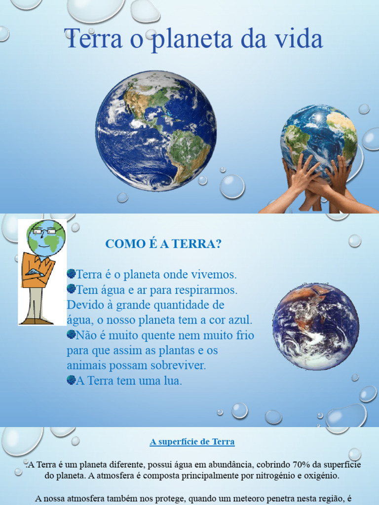 .A Terra é um planeta diferente, possui água em abundância, cobrindo 70% da superfície